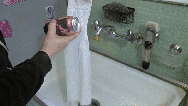 - Tiếp đến, bạn bọc giấy quanh lon nước rồi cất vào ngăn đá tủ lạnh trong khoảng 15-20', nước của bạn sẽ được ướp mát lạnh.
